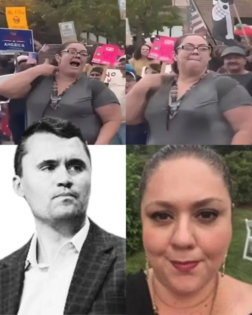 The cascade of events began with the circulation of a video showing a woman, identified as Lucy Martinez, participating in a “No Kings” protest. The footage quickly went viral across platforms like X and Facebook, capturing the woman performing a gesture that was interpreted as mocking Charlie Kirk’s death—specifically, simulating shooting herself in the head (pointing to her temple and shouting “bang, bang”) toward a truck displaying a Kirk support flag.